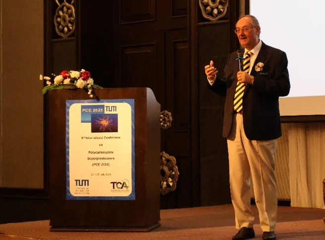 Vom 23.–25. Juli 2025 fand in Bangkok die 6th International Conference on Polycarboxylate Superplasticizers (PCE 2025) statt – mitorganisiert von TUM Emeritus of Excellence Prof. Dr. Johann Plank und der Thai Concrete Association. Polycarboxylat-Superverflüssiger (PCE) sind moderne Betonzusatzmittel, die Frischbeton auch bei geringem Wassergehalt verarbeitbar machen und damit eine zentrale Rolle bei der Entwicklung CO₂-reduzierter Zemente spielen.